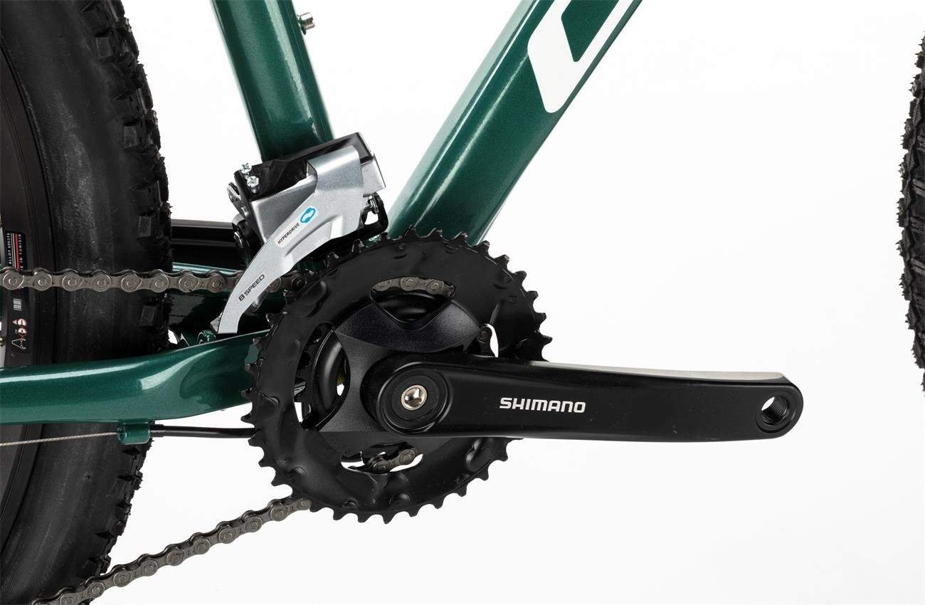 No podemos dejar de mencionar el sistema de transmisión de esta MTB que cuenta con un juego de platos Shimano M315 con un plato doble de 36/22T, lo que te dará una versatilidad necesaria para que te puedas enfrentar a distintos tipos de terreno.