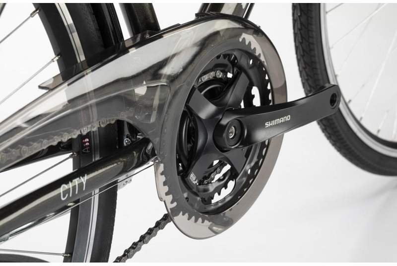 Respecto a la transmisión, la bicicleta destaca gracias a sus componentes Shimano que van a garantizar fiabilidad y precisión. El cambio Shimano M310DL de 8 velocidades, combinado con el desviador Shimano TX51 y las manetas Shimano EF500, te van a permitir afrontar cualquier tipo de pendiente o recorrido urbano sin complicaciones. El sistema de engranaje incluye un piñón Shimano HG200 8v 12/32T y un plato Shimano FCTY501 con triple plato (48/38/28T) y bielas de 170 mm, brindando una gama completa de relaciones para que nunca te falte ni te sobre desarrollo.
