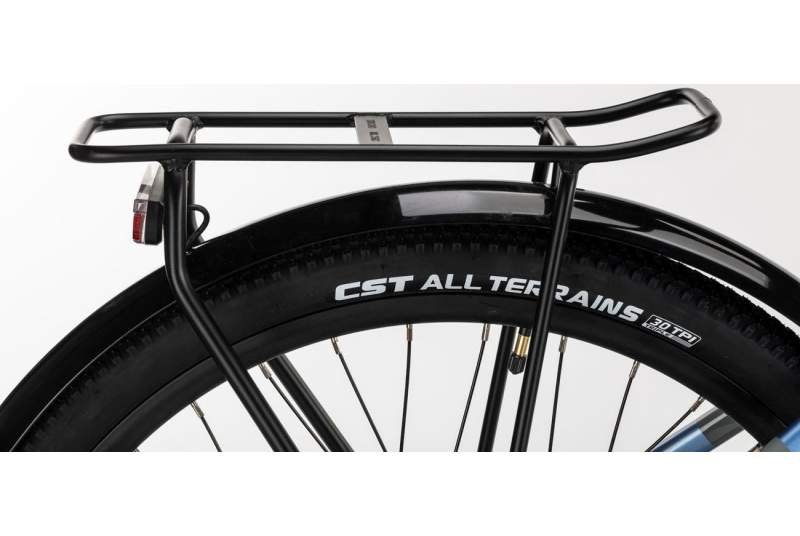 Con un cuadro de aluminio 6061 con batería integrada, de alineadas limpias y diseño minimalista, esta e-bike te va a ofrecer una estructura ligera y resistente, siendo perfecto para tus desplazamientos diarios, escapadas urbanas y trayectos relajados. Sus ruedas de 27,5″ y cubiertas CST C-1820 de 1,95″ aportan estabilidad, agarre y una rodada fluida sobre asfalto o caminos urbanos.