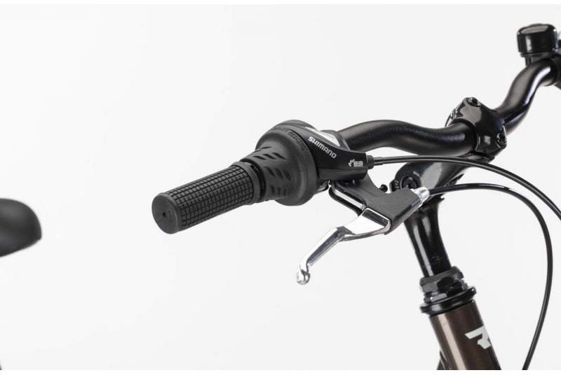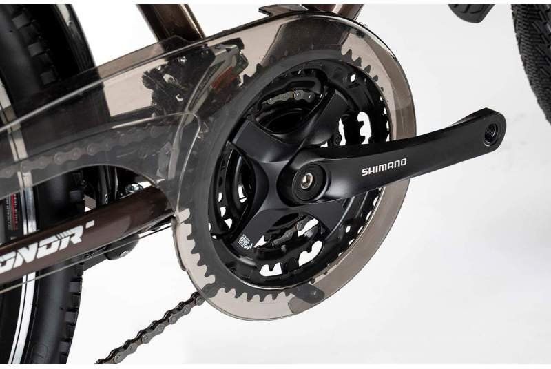 Su cuadro de aluminio garantiza una conducción ligera y maniobrable, mientras que la transmisión Shimano de 21 velocidades (3×7) proporciona una amplia variedad de desarrollos para subir cuestas, rodar con fluidez o circular con comodidad en cualquier tipo de terreno. El manillar elevado, la potencia regulable y el sillín Conor Malibu aseguran una postura relajada y muy confortable.