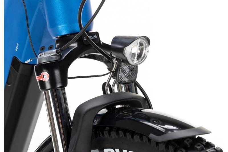 Respecto al control y a la transmisión, la e-bike urbana cuenta con el grupo Shimano CUES U4000 de 9 velocidades, con manetas y cambio de la misma gama que aseguran un funcionamiento preciso y muy suave. El piñón Shimano Cues LG300 11/41T te va a permitir afrontar subidas exigentes, mientras que la cadena Shimano Cues LG500 y el plato de aluminio de 170 mm con 38T y protector aseguran una transmisión duradera y eficiente allá donde vayas.