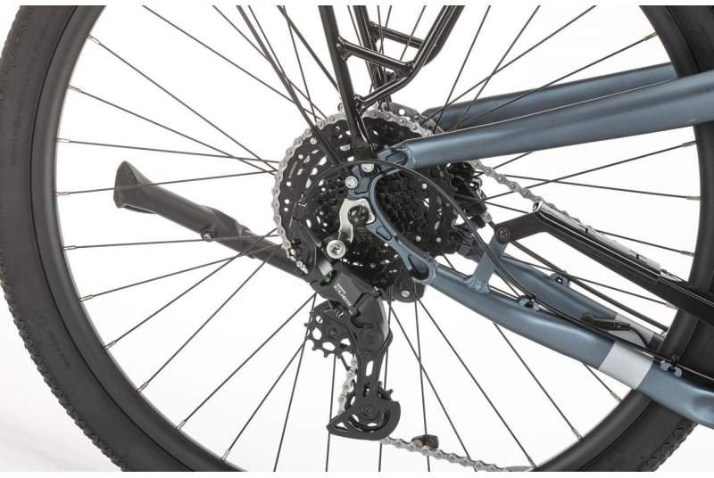 La e-bike cuenta con manetas SHimano Cues U4000 de 9 velocidades, el nuevo estándar de Shimano para bicicletas urbanas y e-bikes. La transmisión completa – cambio trasero CUES U4000, piñón LG300 11/41T, cadena LG500 y plato de 38 dientes con protector de cadena – asegura que tengas una respuesta precisa, un cambio de marchas suave y una durabilidad excepcional, incluso en las condiciones más exigentes. No importa si te enfrentas a las pendientes o llanos más duros, siempre vas a encontrar el desarrollo que más se adapte a tu situación.