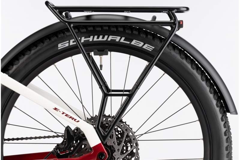 Otra de las características que destaca en la bicicleta Ghost E-Teru Advanced EQ 2025 es su sistema de iluminación. La luz delantera Herrmans MR5 y la luz trasera AXA Juno E-Bike garantizan que siempre estés visible, incluso en las condiciones de baja luminosidad, haciendo que todos tus trayectos sean seguros a cualquier hora del día. Por otro lado, esta e-bike está equipada con guardabarros y un portaequipajes trasero Ghost que permite transportar hasta 25 kg de carga, haciéndola ideal para tus desplazamientos diarios o viajes largos.