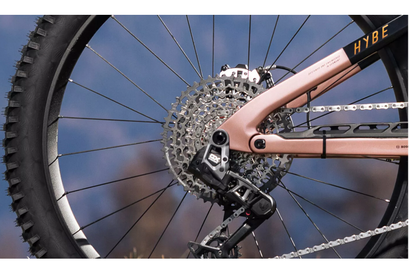 La bicicleta Haibike Hybe CF 11 2025 está equipada con el grupo SRAM GX Eagle AXS T-Type de 12 velocidades, un sistema de cambio inalámbrico electrónico que ofrece una precisión absoluta en cada marcha. Su cassette 10-52T proporciona un rango amplio para afrontar cualquier tipo de terreno, desde pendientes empinadas hasta descensos rápidos.