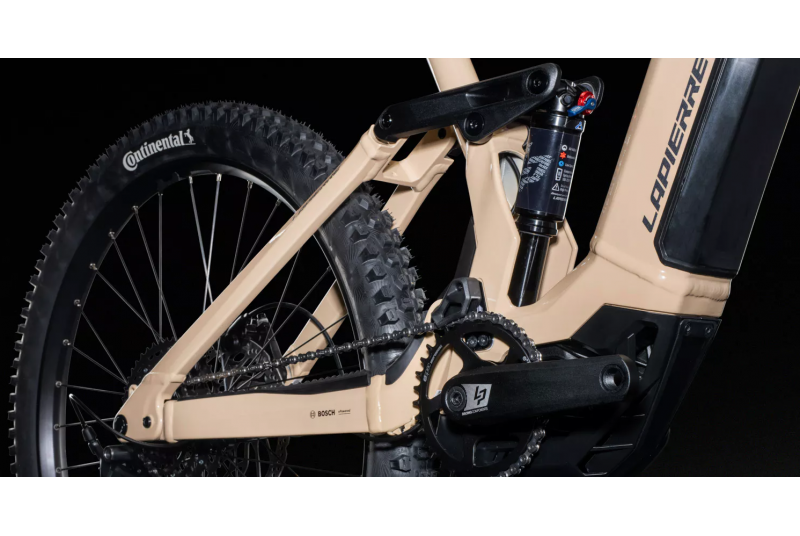 El sistema de suspensión está compuesto por la horquilla RockShox Domain Gold Isolator R, con un recorrido de 170 mm, y un amortiguador Lapierre de 205×60 mm con sistema de anclaje trunnion. Esta configuración garantiza una absorción de impactos excelente, manteniendo la bicicleta ágil incluso en los senderos más técnicos y rocosos.