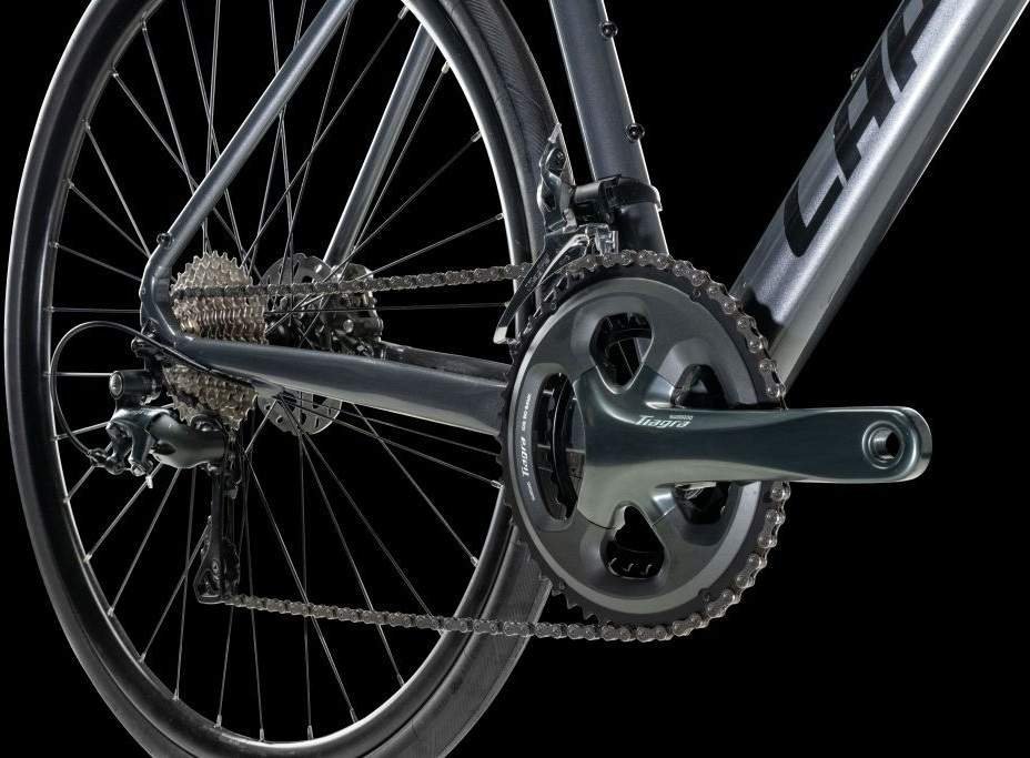 La seguridad es un punto clave en cualquier aventura ciclista. Es por ello que esta bicicleta incorpora frenos de disco hidráulicos Shimano Tiagra BR-4770, con discos de 160 mm en la parte delantera y 140 mm en la parte trasera. Esta configuración garantiza una potencia de frenado consistente y modulable, independientemente de las condiciones climáticas. Ya sea bajo lluvia o en descensos prolongados, podrás confiar en una respuesta de frenado inmediata y controlada, aumentado la seguridad en cada recorrido que hagas.