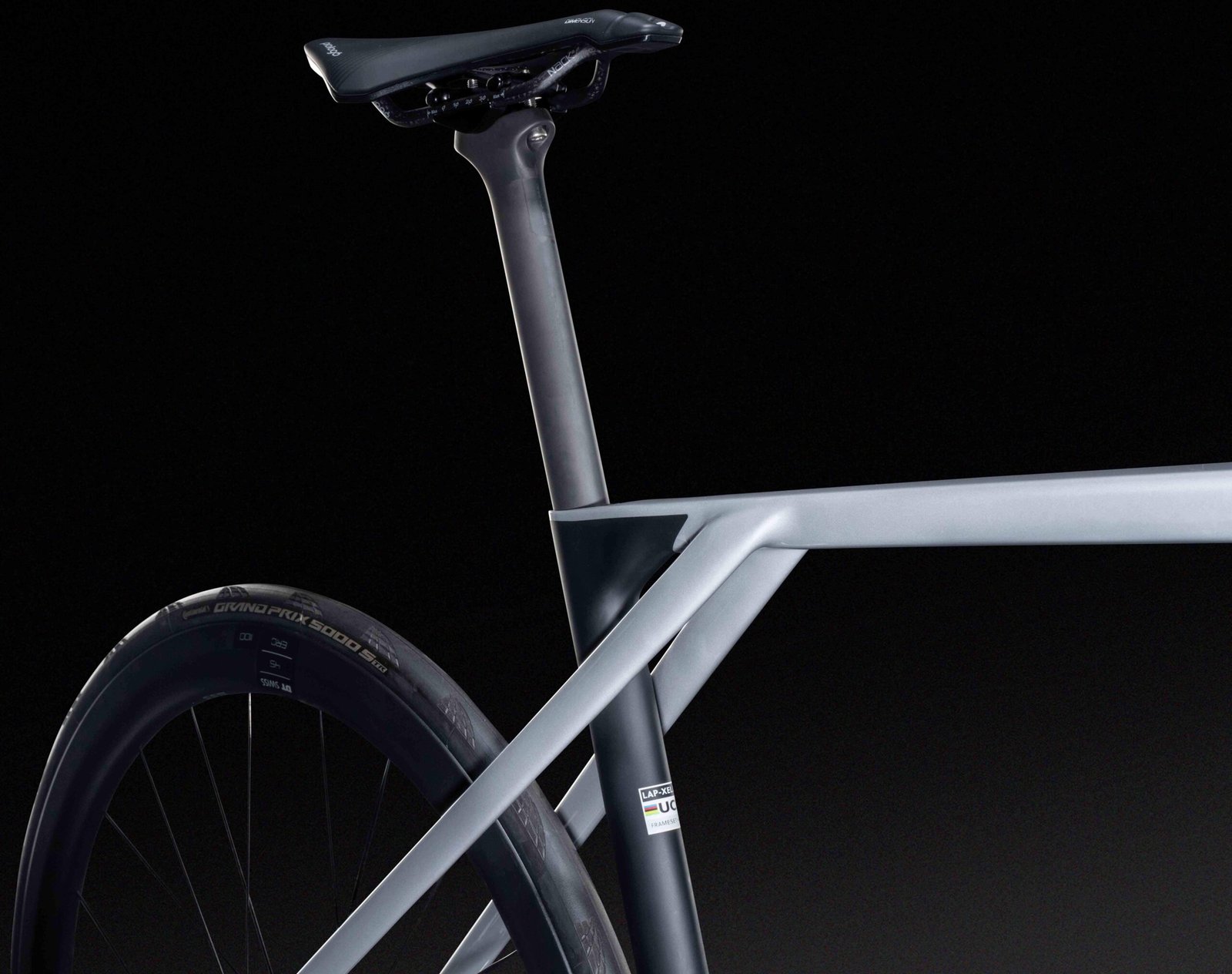 Su diseño ha sido pensado para que tengas una transferencia de potencia excepcional, gracias a una distancia entre ejes que varía entre 969 mm y 1032 mm según la talla, y vainas cortas de 405 mm que van a mejorar la reactividad en cada aceleración. Su ángulo de dirección de 72º a 74º y el ángulo del tubo de sillín de 74º posicionan al ciclista de forma óptima para el rendimiento.