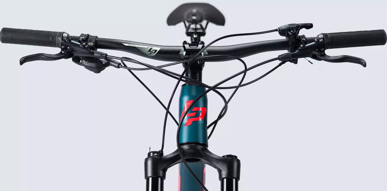 El cuadro está construido en aluminio que ofrece ligereza y resistencia en un diseño optimizado para ofrecer el máximo rendimiento en senderos exigentes, su geometría con un ángulo de dirección de 66º proporciona seguridad en descensos y un ángulo de tubo de sillín de 77º, ideal para una posición eficiente al pedalear en subidas