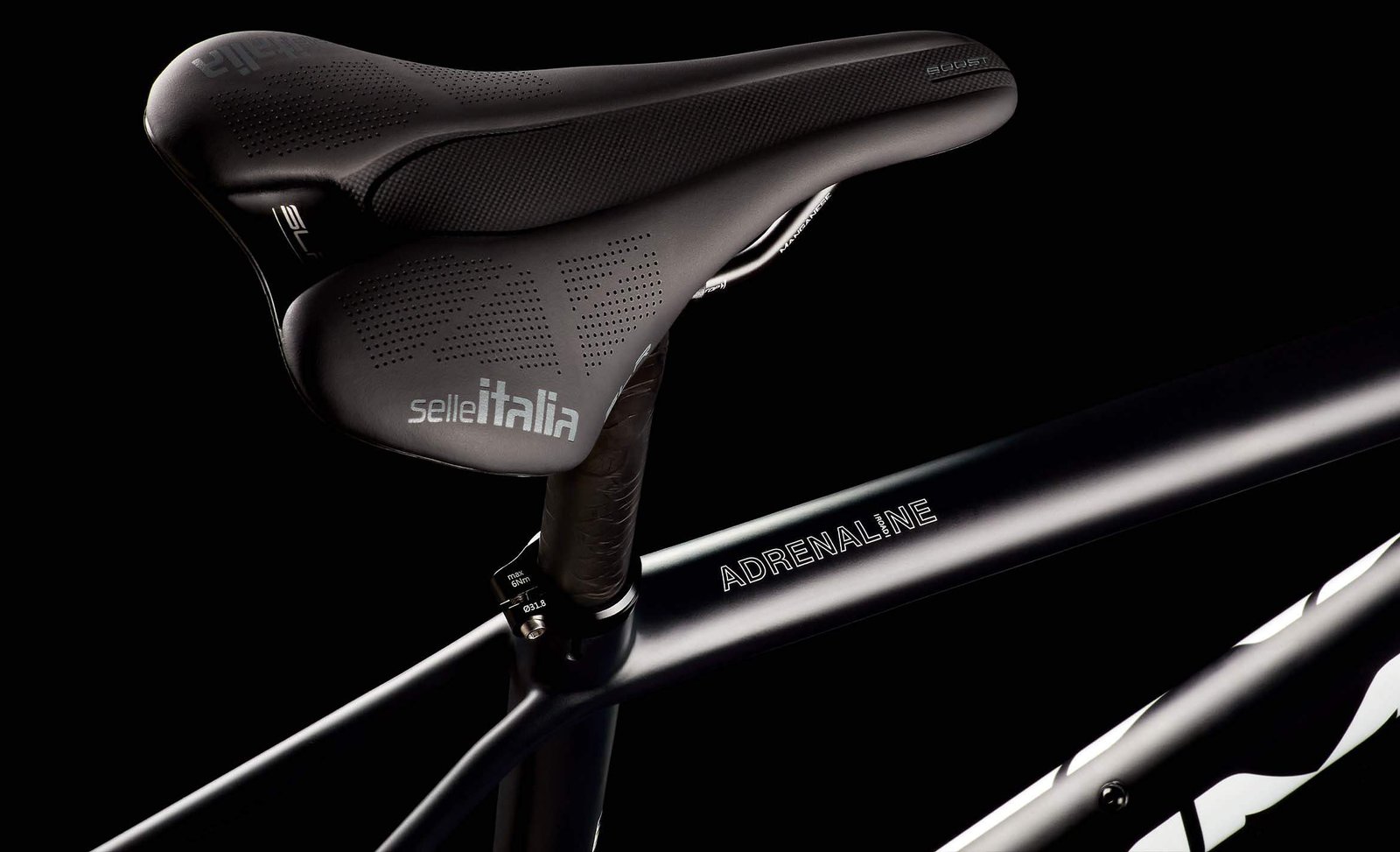 Gracias a su cuadro y horquilla contarás con una ligereza, rigidez y aerodinámica excelentes. Su cuadro Adrenaline – G2 Carbon Concept Lite Frame, construido con fibra de carbono, te va a proporcionar una estructura ligera y reactiva sin comprometer la rigidez. Su diseño monocoque y cableado interno completo no solo van a mejorar la aerodinámica de la bicicleta, sino que también van a ofrecer una estética limpia y agresiva. La horquilla Adrenaline – G2 Carbon Concept Lite Fork con eje pasante de 12 mm proporciona una conducción muy precisa y estable, absorbiendo vibraciones sin perder eficiencia en la transmisión de potencia.