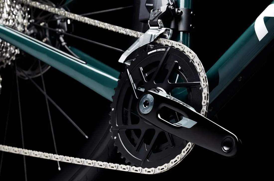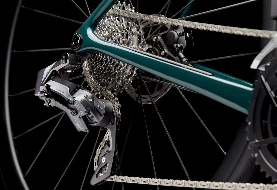 Uno de los puntos fuertes de esta bicicleta es su grupo electrónico completo Sram Rival AXS E1 de 12 velocidades. Su suavidad es absoluta en cada cambio, siendo casi imperceptible, y el salto de marchas con el cassette Sram XG-1250 10-36 se adapta tanto a recorridos llanos como a los perfiles montañosos. La combinación perfecta para gran fondo, permitiéndote pedalear con cadencia en los momentos más exigentes de tus carreras.