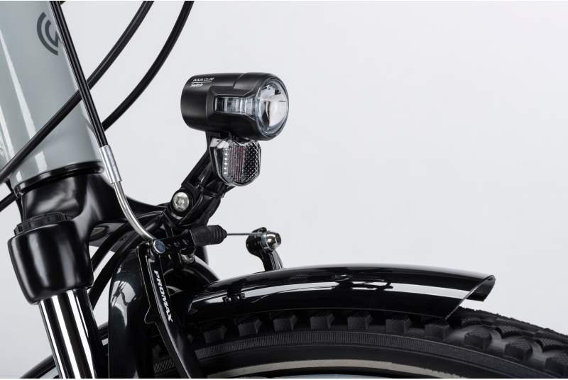 La seguridad es uno de los aspectos clave de esta bicicleta. Está equipada con frenos V-Brake de aluminio, siendo un modelo que te da una gran potencia de frenado confiable y efectiva en diversas condiciones climáticas. Además, cumple con las normativas de seguridad vial, incorporando luces delanteras y traseras, así como reflectores, asegurando que el ciclista sea visible en todo momento.
