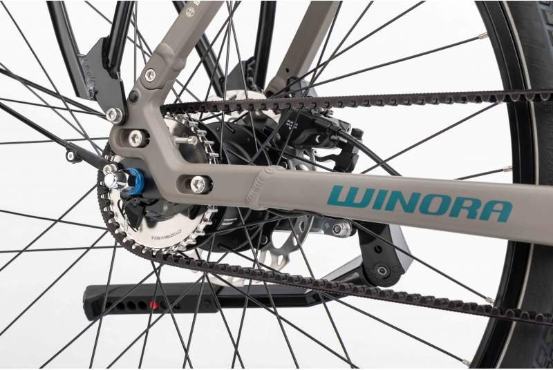 La transmisión y frenado con los que cuenta esta e-bike son de última generación, con el objetivo de que al rodar siempre tengas la máxima seguridad y control. La bicicleta eléctrica urbana cuenta con una transmisión limpia y de bajo mantenimiento con la tecnología Shimano Nexus de 5 velocidades internas, que combina a la perfección con la correa Gates Carbon Drive CDX, una solución sin cadena que evita el desgaste y la suciedad habitual. El cambio Shimano Gripshift SL-C7000-5R proporciona un manejo intuitivo y preciso. Respecto al apartado de la seguridad, Winora ha trabajado al milímetro para que tengas frenadas potentes y eficaces en todo momento gracias a los frenos de disco hidráulico Shimano Deore BR-MT410 con discos de 180 mm en la parte delantera y en la parte trasera.