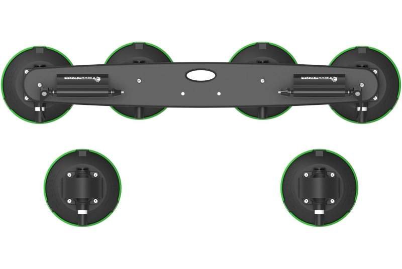 Incluye una plataforma de policarbonato (PC) de una sola capa, mucho más liviana y resistente, equipada con 4 ventosas TreeFrog, cada una clasificada para soportar 110 kg, junto con 2 adaptadores de horquilla y otras 2 ventosas con un fuerte velcro para sujetar de forma estable las ruedas traseras.