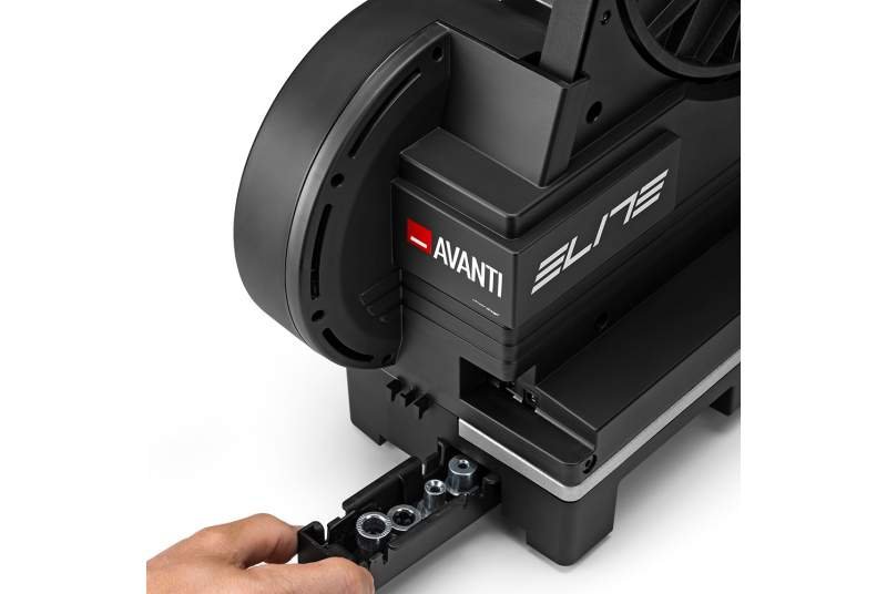 El rodillo Elite Avanti viene equipado con un mini cajón integrado, una característica que realmente marca la diferencia, con respecto a otros modelos del mercado, en el que podremos almacenar todos los componentes necesarios para poder usar el rodillo como adaptadores, pequeña llave allen o un espaciador de pastillas de freno de disco.